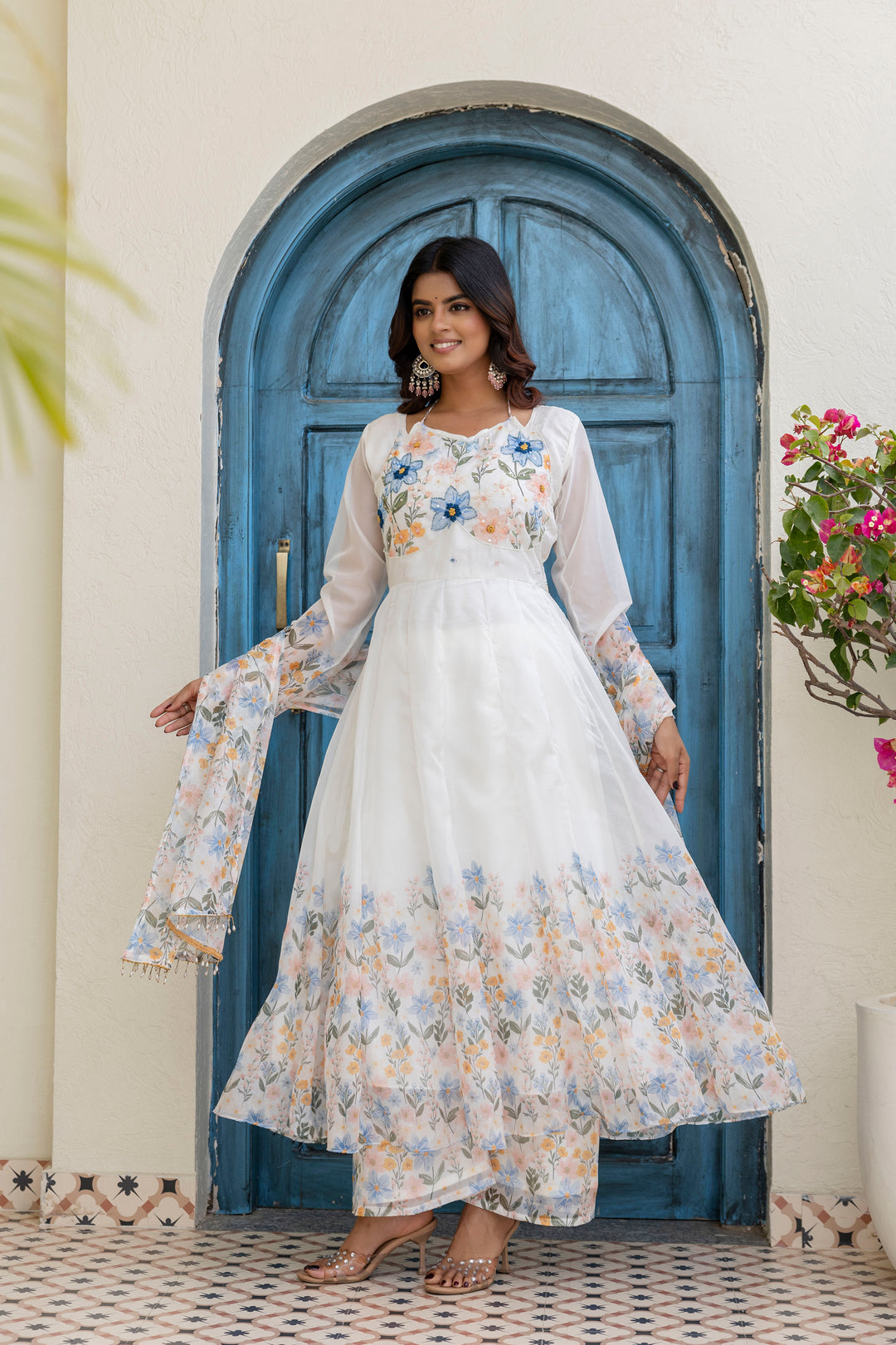 White Color Handwork with print Gown