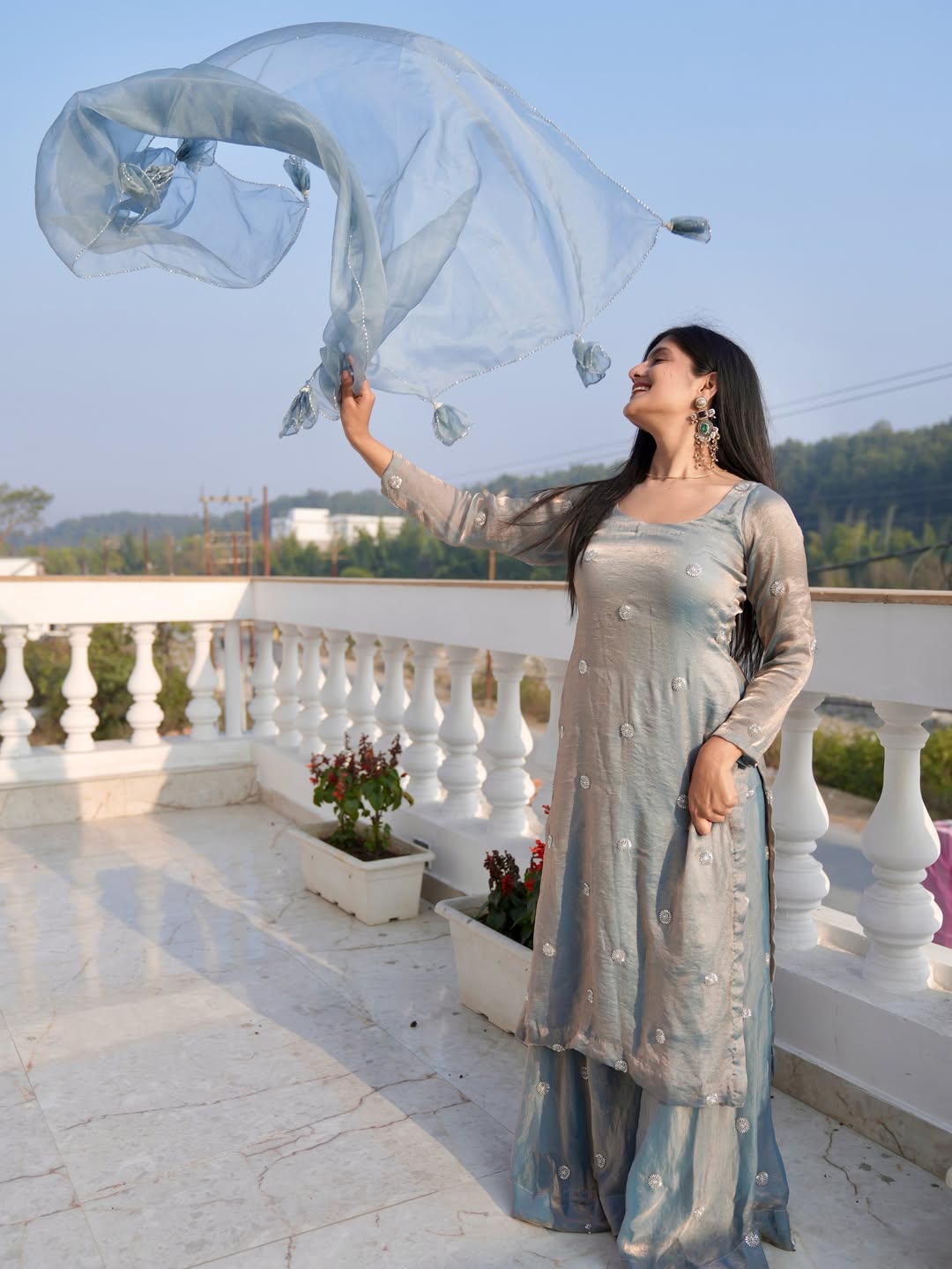 Stylish Backless Kurti Plazzo with Dupatta Set