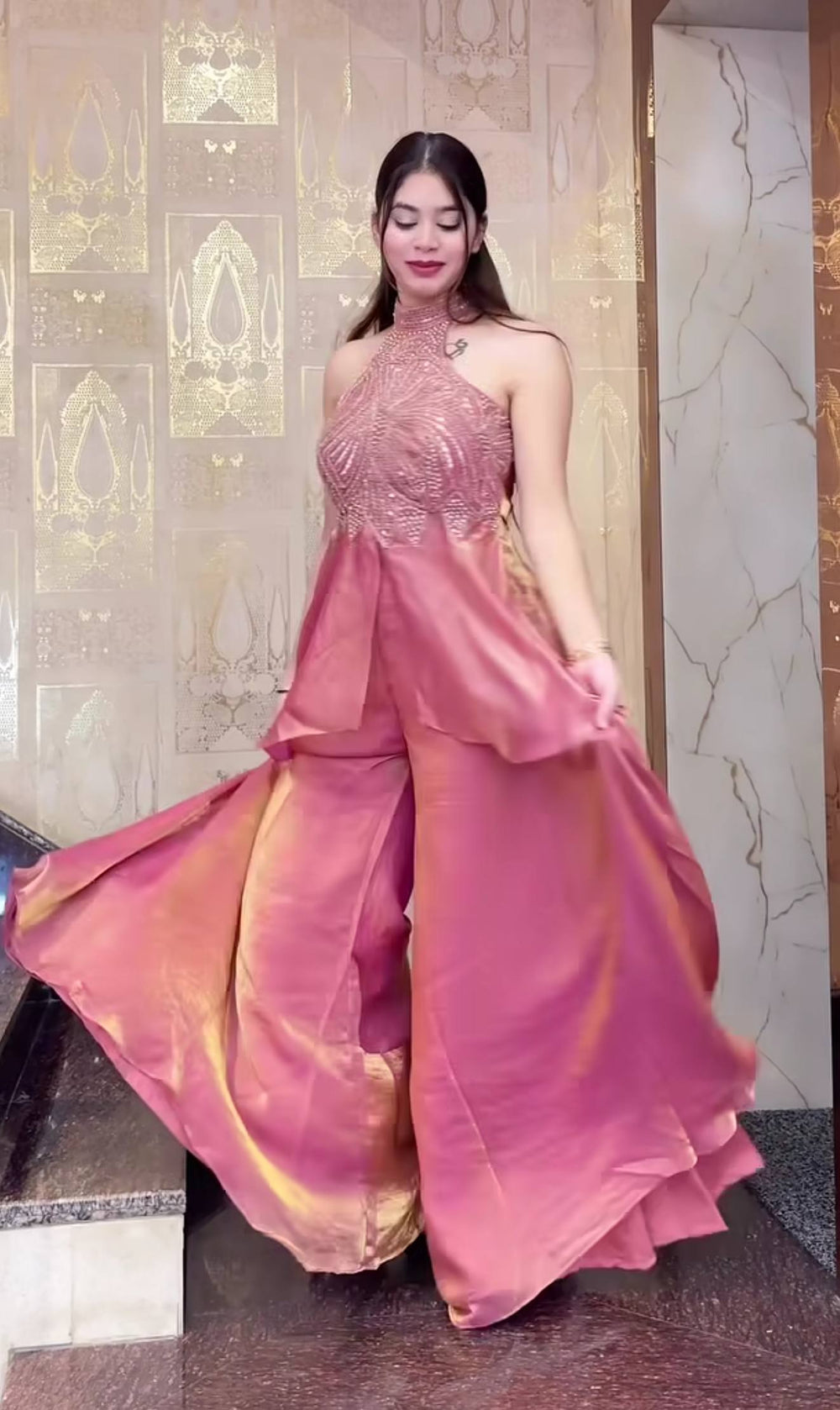Heavy Two Tone shiny Pink Fendy Satin Silk Party Wear Sharara Set